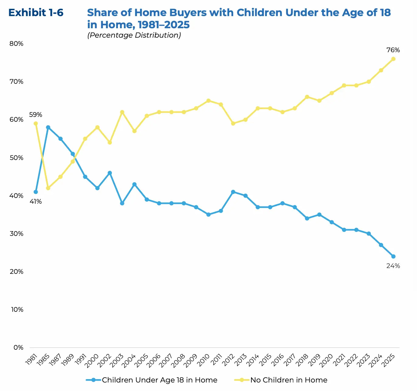 • Only 24 percent of buyers have children under 18 in the home